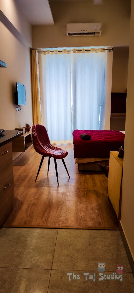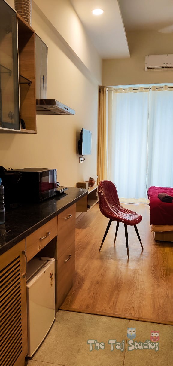 *** Super Luxury Personal Apartment by Taj Studios *** This has #PVR Cinemas to watch Movies #Food Court & Joints # Branded Shopping Brands like 3Shoppers Stop, #Life Style, #Reliance Store An tastefully inspired boutique one bedroom serviced apartment with a large balcony and neat and clean bathroom. The apartment comes with amenity kits, wifi, fully equipped kitchen,Split AC, RO,Microwave,Fridge,TV making it the perfect oasis for a business trip or even a leisurely getaway. #This is perfect oasis for a business trip or even a leisurely getaway #This place(fully equipped studio apartment Couple Friendly/Private Parties) #Independent / Self-Check-In Keys are in Lock Box placed at main gate of property # All branded utensils placed- Fridge, Chimney, Microwave, RO, Cups, Glass, Plates, Spoons, Toaster, Induction, Room Heater, Blankets, Split AC, Geyser, TV with OTT platform, High speed wifi etc